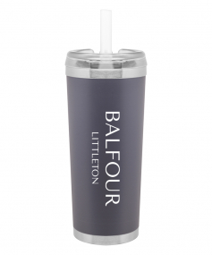 24 oz double wall 18/8 stainless steel thermal tumbler with copper vacuum insulation, stainless steel rim and base, threaded Eastman Tritan lid, snap closure, straw opening, and flexible wide silicone straw.