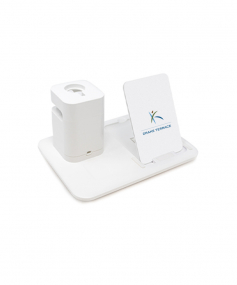 The 3-in-1 charging dock. Tired of fumbling with messy wires and unsafe charging cords? The Docksy is your three-in-one charging solution. Ideal for a nightstand or counter, the Docksy allows you to recharge each of your smart devices at once! 6" W x 8" L x 4.3" H