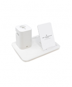 The 3-in-1 charging dock. Tired of fumbling with messy wires and unsafe charging cords? The Docksy is your three-in-one charging solution. Ideal for a nightstand or counter, the Docksy allows you to recharge each of your smart devices at once! 6" W x 8" L x 4.3" H