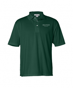 Made of 4.0 Oz., 100% polyester. Features moisture wicking fabric, fashion knit collar with box placket and three white pearlized buttons, and double-needle stitched cuffs and side vents.