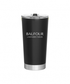 20 oz double wall 18/8 stainless steel thermal tumbler with vacuum insulation, and clear acrylic push-on swivel lid. Hand wash recommended. Do not microwave. Complies with FDA, Prop 65. 7.125" H x 3.75" W