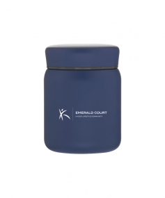 16.9 oz double wall 18/8 stainless steel thermal food container with copper vacuum insulation, matching threaded lid, threaded insulated lid, and rubber bottom. Individual gift box. Hand wash recommended. Do not microwave. Complies with FDA, Prop 65. 5.25" H x 3.875" W