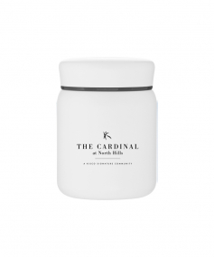 16.9 oz double wall 18/8 stainless steel thermal food container with copper vacuum insulation, matching threaded lid, threaded insulated lid, and rubber bottom. Individual gift box. Hand wash recommended. Do not microwave. Complies with FDA, Prop 65. 5.25" H x 3.875" W