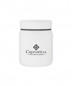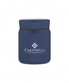 16.9 oz double wall 18/8 stainless steel thermal food container with copper vacuum insulation, matching threaded lid, threaded insulated lid, and rubber bottom. Individual gift box. Hand wash recommended. Do not microwave. Complies with FDA, Prop 65. 5.25" H x 3.875" W