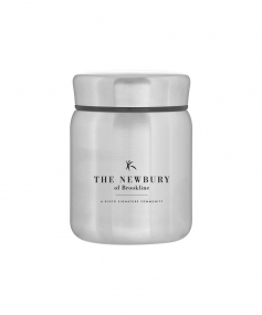16.9 oz double wall 18/8 stainless steel thermal food container with copper vacuum insulation, matching threaded lid, threaded insulated lid, and rubber bottom. Individual gift box. Hand wash recommended. Do not microwave. Complies with FDA, Prop 65. 5.25" H x 3.875" W