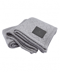 This cozy knit blanket turns a house into a home. Perfect for bundling up in the cold winter months, it will be your new favorite. A nylon/wool blend gray knit on one side, with faux polyester lambswool on reverse. 510 GSM Fabric / 250 GSM Sherpa. 50" W x 60" H x 0.01" D
