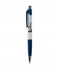 Crisp white barrels accented vibrant colored trim & bright silver accents . Guaranteed ultra-smooth cartridge & generous colored rubber grip provide writing excellence. Black or blue ink, blue ink default. Complies with Prop 65. 5.4" L x 5.4" L x 5" Diameter.