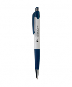 Crisp white barrels accented vibrant colored trim & bright silver accents . Guaranteed ultra-smooth cartridge & generous colored rubber grip provide writing excellence. Black or blue ink, blue ink default. Complies with Prop 65. 5.4" L x 5.4" L x 5" Diameter.
