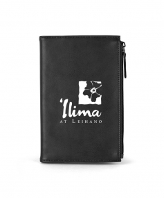 Stylish executive notebook with PU/split leather outer and suede inner cover. Features large zipper pocket (fits up to iPhone 7S Plus). Includes 80-sheet replaceable notebook. 5 3/4" H x 8 1/2" H