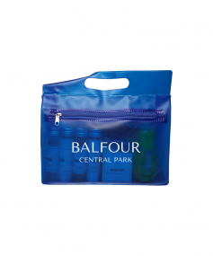 It's always the little things that are forgotten that are hard to find at your new place. We packed all the essentials into one handy tote. EST Shampoo, Conditioner, Body Wash, Lotion & Hand Soap, Old Spice and Dove Deodorants, Toothbrush, Colgate Toothpaste, Whispermint Mouthwash, Brush/Comb, Band Aids, Advil packet, Emergen-C Drink Packs, Alka Seltzer, Baby Wipes, Cotton Balls/Qtips, Tide Laundry Packet and Palmolive Dishwashing Soap. 9 1/2" W x 8" H x 2 3/4" D