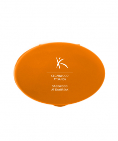 Oval-shaped, lightweight, compact design fits in pockets or purses to carry a variety of pills, large or small. Complies with Prop 65. 1 5/16" W x 1 7/8" H x 7/8" D