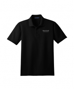 5.6-ounce, 60/40 cotton/poly. Includes double-needle stitching throughout. Flat knit collar and 3-button placket with dyed-to-match buttons. Features open hem sleeves and side vents.