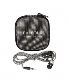 Molded textured case with zipper closure. Includes matching Braided Ear buds. Complies with Prop 65. 3.25" L x 3.25" H x 1.25" W